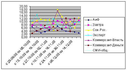 издания). На графиках представлены «Аргументы и факты». К этой же группе относятся